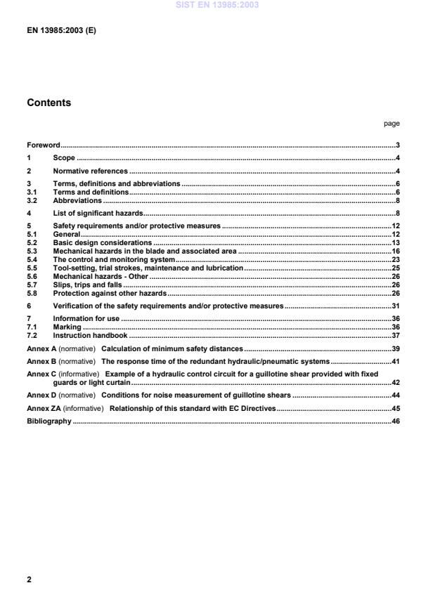 EN 13985:2003 is a standard published by the European Committee for Standardization (CEN). Its full title is "Machine tools - Safety - Guillotine shears". This standard covers: 1.1 This standard specifies technical safety requirements and measures to be adopted by persons undertaking the design as defined in 3.11 of EN 292-1:1991, manufacture and supply of guillotine shears which are intended to work cold metal or material partly of cold metal. 1.2 This standard also covers guillotine shears whose primary intended use is to work cold metal, which are to be used in the same way to work other sheet materials (e.g. cardboard, plastic, rubber, leather). 1.3 The requirements in this standard take account of intended use, as defined in 3.12 of EN 292-1:1991. This standard presumes access to the guillotine shear from all directions, deals with the hazards described in clause 4, and specifies the safety requirements and/or protective measures for both the operator and other exposed persons. 1.4 This standard also applies to ancillary devices which are an integral part of the guillotine shear. For the safeguarding of integrated manufacturing systems using guillotine shears see also prEN 1921 (ISO 11161:1994 modified). 1.5 This standard includes guillotine shears in which energy is imparted to the blade by a number of means. e.g.: a) mechanically driven from a motor through a friction clutch; b) through a direct drive motor and brake; c) through hydraulic pressure; d) through pneumatic pressure. 1.6 This standard does not cover machines whose principal designed purpose is: a) cutting in other than a straight line (e.g. at nibbling machines); b) cutting by continuous action at crocodile shears (see 3.4). 1.7 This standard is applicable to machines built after its date of issue.