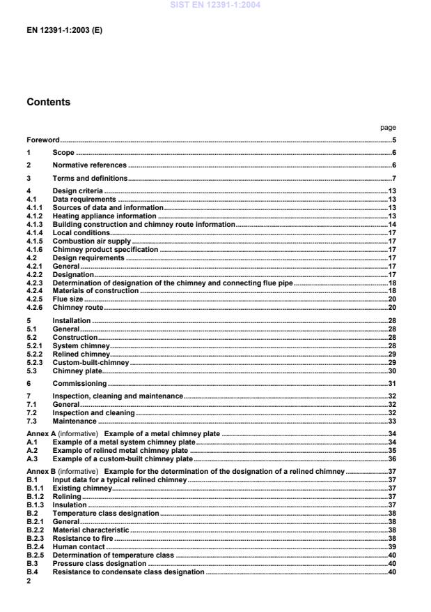EN 12391-1:2003 is a standard published by the European Committee for Standardization (CEN). Its full title is "Chimneys - Execution standard for metal chimneys - Part 1: Chimneys for non-roomsealed heating appliances". This standard covers: This European Standard describes the method of specifying the design criteria and the installation method for building custom built chimneys with rigid metal liners, for relining a chimney with rigid or flexible metal liners and for system chimneys with rigid metallic liners used to convey the products of combustion from heating appliances to the outside atmosphere. It also gives information on commissioning, cleaning and maintenance of an installed chimney.