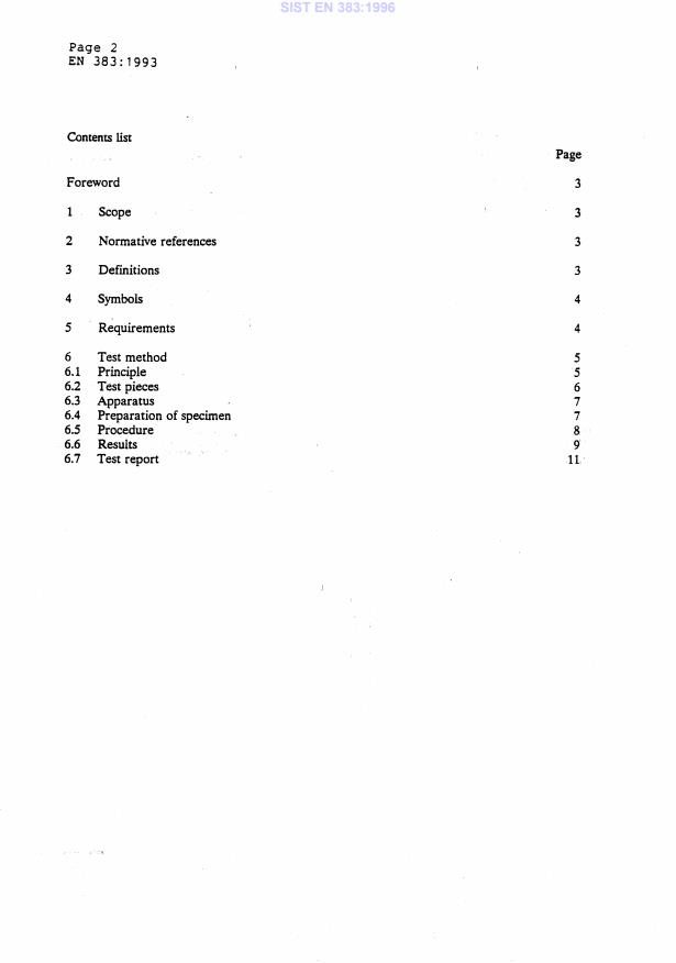 EN 383:1993 is a standard published by the European Committee for Standardization (CEN). Its full title is "Timber structures - Test methods - Determination of embedding strength and foundation values for dowel type fasteners". This standard covers: This standard specifes laboratory methods of determining the embedding strength and foundation values of solid timber, glued laminated timber, and wood based sheet products for with dowel type fasteners.