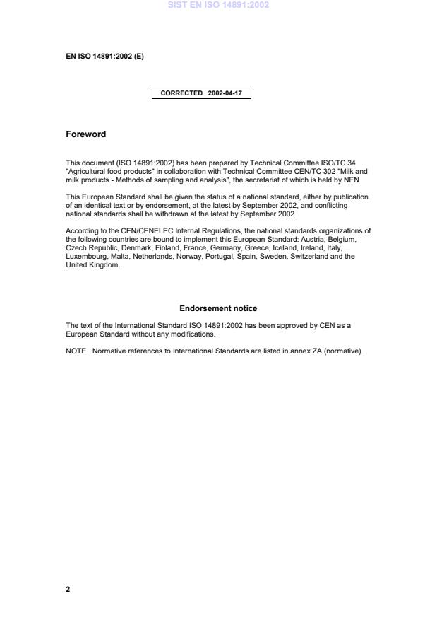 International Standard ISO 14891/IDF 185 was prepared by Technical Committee ISO/TC 34, Food products,