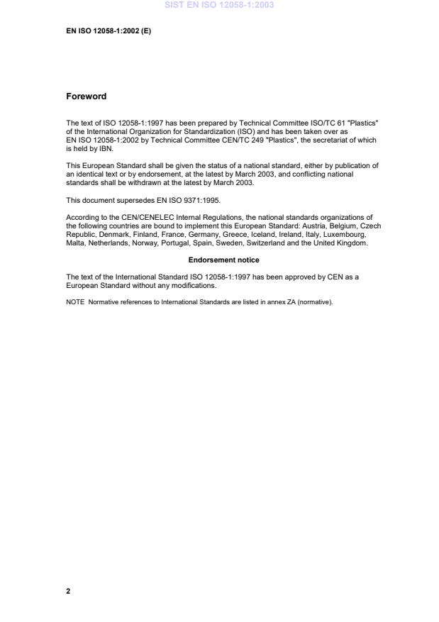 EN ISO 12058-1:2002 is classified under the following ICS (International Classification for Standards) categories: 83.080.01 - Plastics in general. The ICS classification helps identify the subject area and facilitates finding related standards.