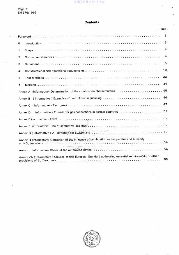 EN 676:1996 is a standard published by the European Committee for Standardization (CEN). Its full title is "Automatic forced draught burners for gaseous fuels". This standard covers: This standard specifies the terminology, the general requirements for the construction and operation of automatic forced draught gas burners and also the provision of control and safety devices, and the type test procedure for these burners. This standard is applicable to: - automatic gas burners with a combustion air fan (hereinafter called 'burners') that are equipped as described in 4, intended for use in heat generators of different types, and that are operated with fuel gases; - total pre-mixed burners and nozzle mixed burners. The standard is applicable to: - single burners, although such burners are fitted to a single appliance, in which case the requirements of the relevant appliance standard shall additionally apply; - single-fuel and dual-fuel burners when operating only on gas; - the gas function of dual-fuel burners designed to operate simultaneously on gaseous and liquid fuels in which case the requirements of EN 267 will also in respect of the liquid fuel function. This standard does not apply to induced draught burners intended for use in industrial processes although some aspects of the standard may be relevant.