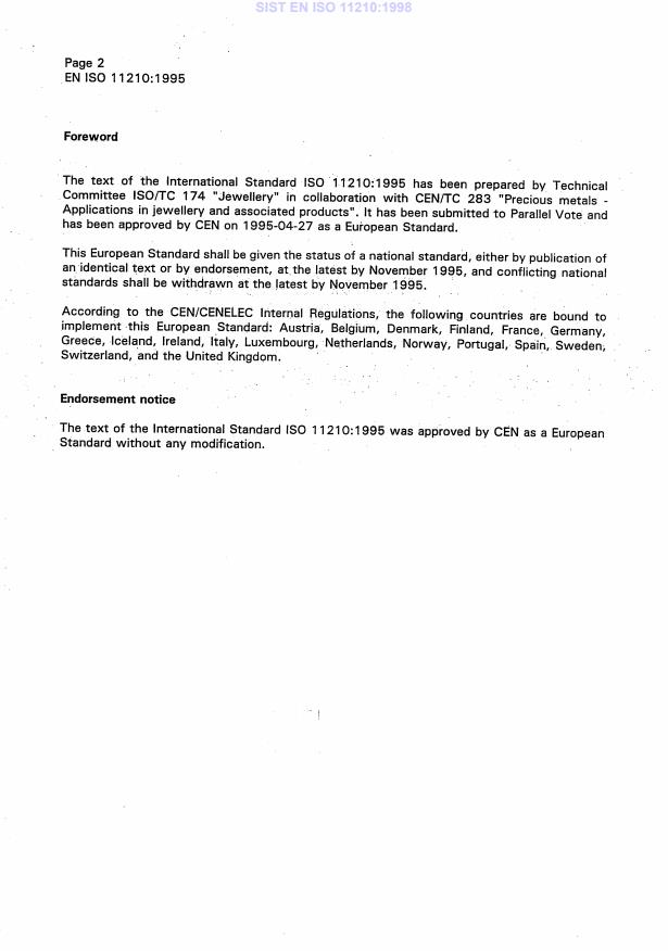 EN ISO 11210:1995 is classified under the following ICS (International Classification for Standards) categories: 39.060 - Jewellery. The ICS classification helps identify the subject area and facilitates finding related standards.