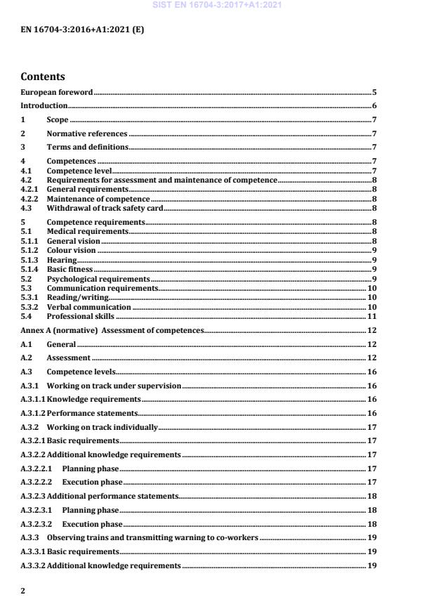 EN 16704-3:2016+A1:2021 is a standard published by the European Committee for Standardization (CEN). Its full title is "Railway applications - Track - Safety protection on the track during work - Part 3: Competences for personnel related to work on or near tracks". This standard covers: This European Standard defines the activities related to work on or near the railway track and the associated competence profiles of persons who carry out these activities and defines procedures for assessing the competence.