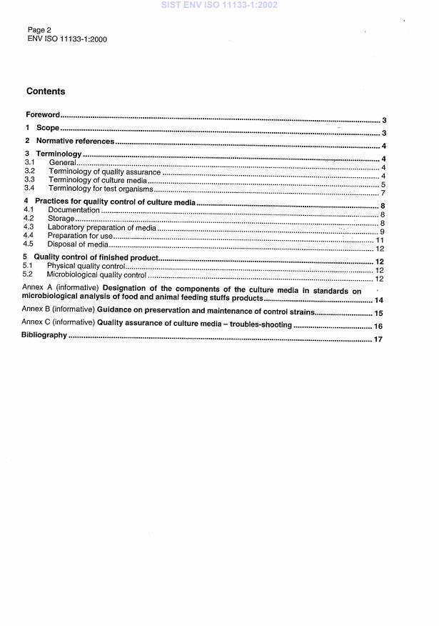 ENV ISO 11133-1:2000 is a standardization document published by the European Committee for Standardization (CEN). Its full title is "Microbiology of food and animal feeding stuffs - Guidelines on preparation and production of culture media - Part 1: General guidelines on quality assurance for the preparation of culture media in the laboratory (ISO/TS 11133-1:2000)". This standard covers: This European Standard provides the general terminology related to quality assurance, culture media and specifies the minimum requirements for the quality assurance of culture media to be used for the microbiological analysis of products intended for human consumption or animal feeding.