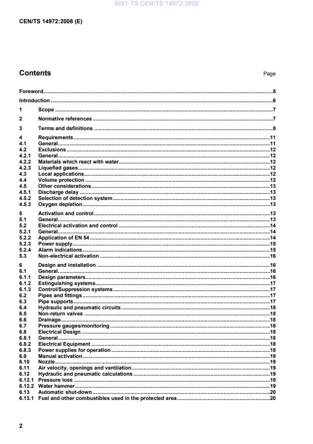 CEN/TS 14972:2008 is a technical specification published by the European Committee for Standardization (CEN). Its full title is "Fixed firefighting systems - Watermist systems - Design and installation". This standard covers: This document specifies requirements and gives information on design, installation and testing and gives criteria for the acceptance of fixed landbased watermist systems for specific hazards and provides fire test protocols for a variety of hazard groups. The requirements are not valid for watermist systems on ships, in aircraft, on vehicles and mobile fire appliances or for below ground systems in the mining industry. The requirements can be used as a guidance for other fixed firefighting systems, however, provided that any specific requirements for other firefighting supplies are taken into account. Aspects of watermist associated with explosion protection are beyond the scope of this document. As the fire test scenarios of this document apply to a group of similar applications, by analogy the successful performance of watermist systems also applies to that group, as defined in Annex A. Extrapolation is not covered. The document is not intended to be used as a universal design manual of watermist, as different systems have different characteristics and hence follow different design criteria to satisfy their duty requirements. In the absence of a generalized design method, it is the intent of this document that watermist systems are full-scale fire tested and its system component evaluations are conducted by qualified testing laboratories. The full system acceptance requires the relevant fire test report, the component test report(s) as well as manufacturer’s design, installation, operation and maintenance manual for the application. If the gas in the system is a significant factor for extinguishment/suppression, the relevant parts of EN 12094 and EN 15004-1 are applicable. Firefighting systems in accordance with EN 12845 and water spray systems are not covered.