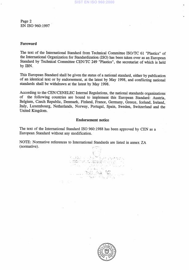 EN ISO 960:1997 has the following relationships with other standards: It is inter standard links to EN ISO 15512:2003. Understanding these relationships helps ensure you are using the most current and applicable version of the standard.