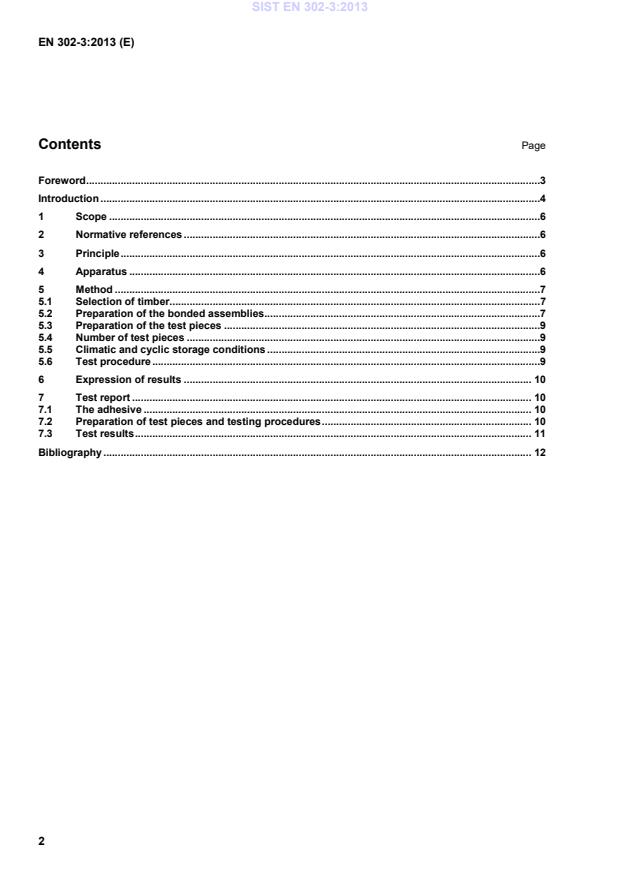 EN 302-3:2013 is a standard published by the European Committee for Standardization (CEN). Its full title is "Adhesives for load-bearing timber structures - Test methods - Part 3: Determination of the effect of acid damage to wood fibres by temperature and humidity cycling on the transverse tensile strength". This standard covers: This European Standard specifies a method for determining the effect on bond strength of damage to wood fibres caused by the action of acids from the adhesive or primer used in the gluing process during climatic cycling. It is suitable for the following applications: a) for assessing the compliance of adhesives with EN 301, EN 15425 and FprEN 16254; b) for assessing the suitability and quality of adhesives for load-bearing timber structures; c) for determining if the adhesive after bonding has a damaging influence on the strength of the wood due to chemical action. This test is intended primarily to obtain performance data for the classification of adhesives for load-bearing timber structures according to their suitability for use in defined climatic environments. This test is carried out on Norway spruce (Picea abies L.). This method is not intended for use to provide numerical design data and does not necessarily represent the performance of the bonded member in service.