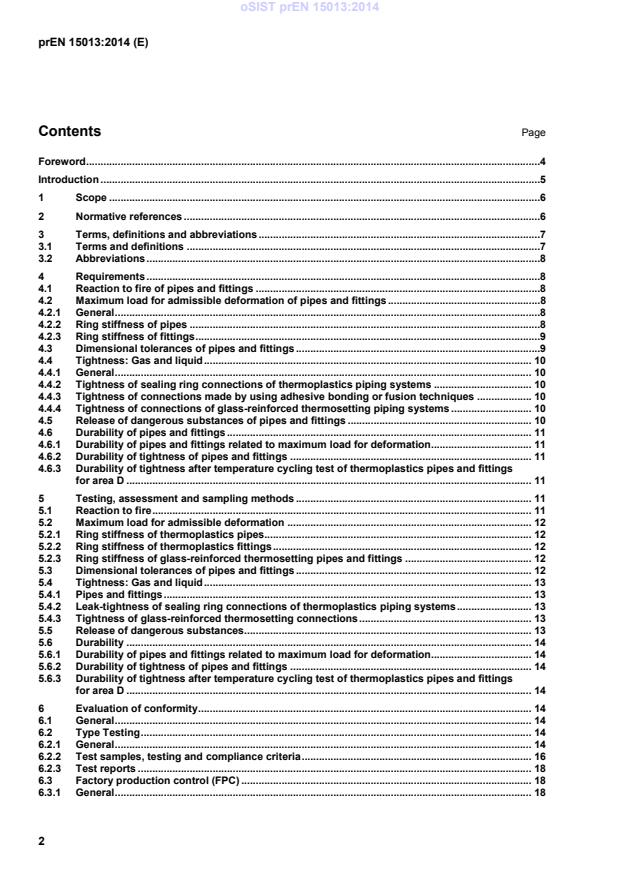 prEN 15013 is a draft published by the European Committee for Standardization (CEN). Its full title is "Plastics piping systems - Non-pressure drainage and sewerage systems buried in ground - Performance characteristics for pipes, fittings and their joints". This standard covers: This European Standard specifies performance requirements for plastics pipes, fittings and their joints intended for non-pressure underground drainage and sewerage applications and gives associated test methods for verification and evaluation of conformity with this European Standard.