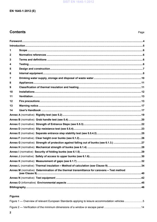 3 Terms and definitions For the purposes of this document, the terms and definitions given in EN 13878:2003 apply. 4 Testing The tests described in Annex A to N are intended to verify that a caravan representative of a given model, including its fixtures and fittings, meets the requirements of this European Standard. These tests are intended to simulate the most onerous conditions for the relevant characteristics. NOTE It is recommended to take environmental aspects into account during development, production and disposal of caravans based on established knowledge and within the respective technical possibilities (see also Annex O). SIST EN 1645-1:2012