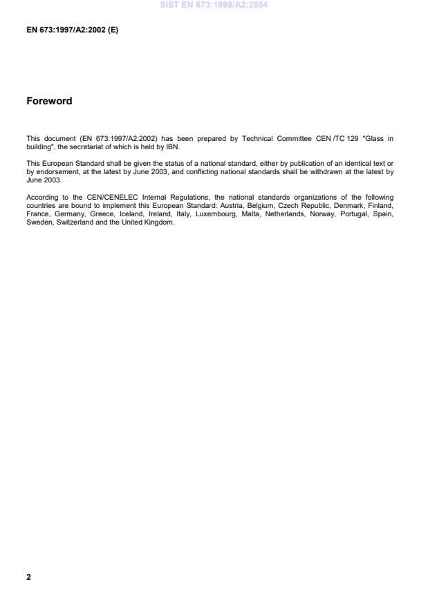 This amendment A2 modifies the European Standard EN 673:1997; it was approved by CEN on 1 November 2002.