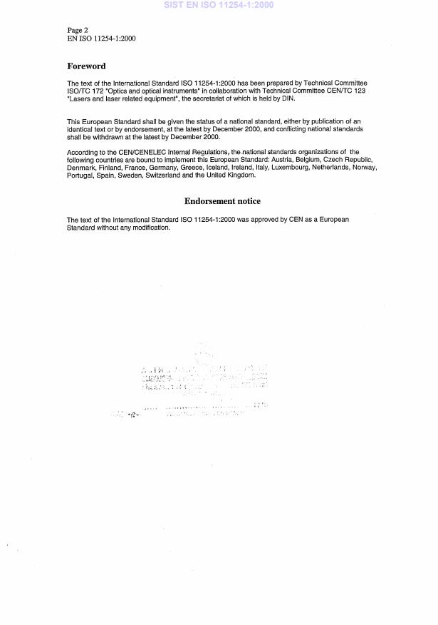 EN ISO 11254-1:2000 has the following relationships with other standards: It is inter standard links to EN ISO 21254-2:2011, EN ISO 21254-1:2011, EN ISO 18217:2015. Understanding these relationships helps ensure you are using the most current and applicable version of the standard.