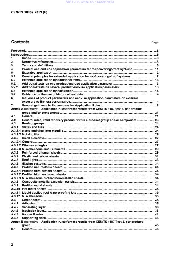 CEN/TS 16459:2013 is a technical specification published by the European Committee for Standardization (CEN). Its full title is "External fire exposure of roofs and roof coverings - Extended application of test results from CEN/TS 1187". This standard covers: This Technical Specification gives guidance on the process and development of extended fields of application using test results obtained from CEN/TS 1187 test 1 to 4, and included in test reports, and other relevant information in order to evaluate and classify the performance of roofs/roof coverings. This Technical Specification provides a methodology to consider the possible effect(s) on classification to EN 13501 5 from single or multiple changes to the individual product and end-use application parameters of the roof/roof covering. Specific application guidance is given in Annexe A, Annex B, Annex C and Annex D for CEN/TS 1187 tests 1 to 4 respectively.