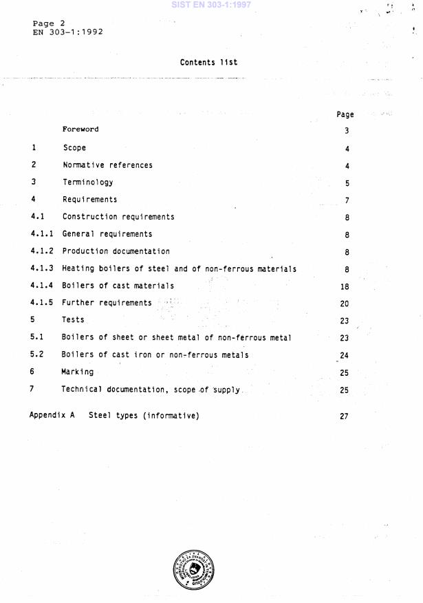EN 303-1:1992 is a standard published by the European Committee for Standardization (CEN). Its full title is "Heating boilers - Heating boilers with forced draught burners - Part 1: Terminology, general requirements, testing and marking". This standard covers: This standard applies to heating boilers with burners using fans up to a nominal heat output of 300 kW. They are operated, either with negative pressure (natural draught boiler) or with positive pressure (pressurized boiler) in the combustion chamber, in accordance with the boiler manufacturer's instructions. Particular requirements for boilers which can only be used with open vents are contained in a separate document (being prepared). The requirements of this standard apply to heating boilers which are tested on an authorized test rig.