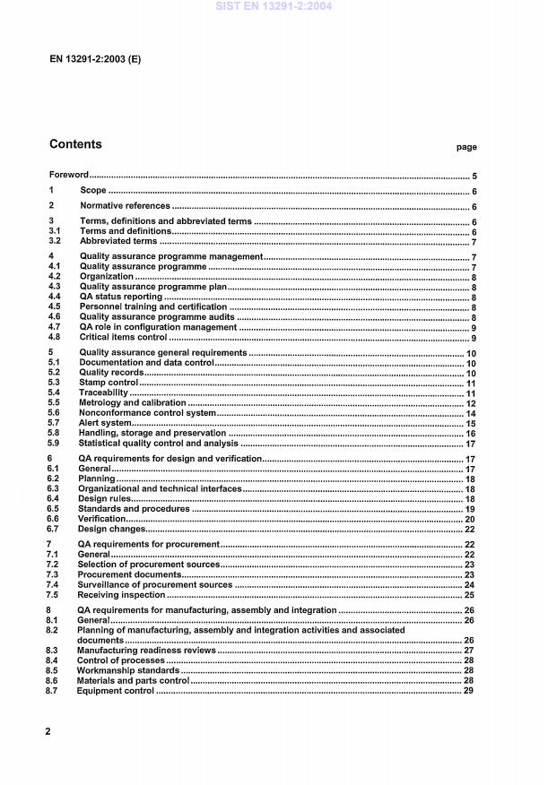 EN 13291-2:2003 is a standard published by the European Committee for Standardization (CEN). Its full title is "Space product assurance - General requirements - Part 2: Quality assurance". This standard covers: This standard defines the Quality Assurance (QA) requirements for the establishment and implementation of QA programmes for projects covering mission definition, design, development, production and operations of space systems, including disposal. This standard is applicable to the customer/supplier relationship of space products to the extent agreed by both parties. The requirements of this standard should be tailored to the needs and classes of specific projects. For software quality assurance the software PA standard ECSS-Q-80 is applicable.