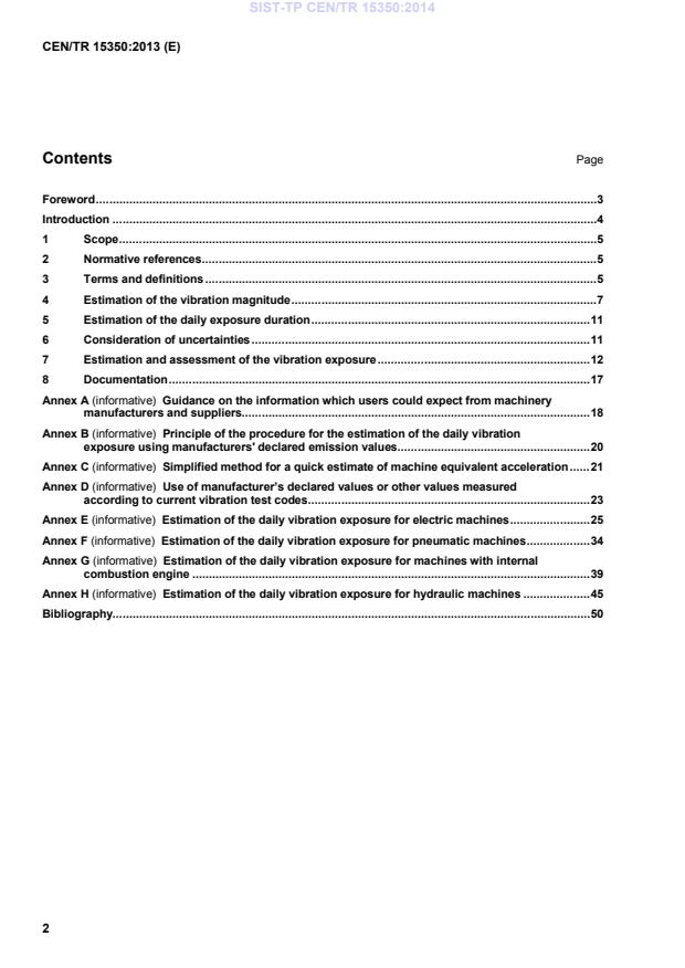 Le présent Rapport technique fournit des recommandations sur la méthode à utiliser pour évaluer la durée d’exposition et l’exposition quotidienne aux vibrations A(8) conformément à l'EN ISO 5349-1. Il propose également une méthode simplifiée pour déterminer l’exposition quotidienne aux vibrations au moyen d'un tableau indiquant une valeur d'exposition en fonction de la valeur totale de vibration équivalente et de la durée d’exposition associée. L’une ou l’autre de ces méthodes peut être utilisée, même dans le cas d’expositions multiples au cours d’une même journée.