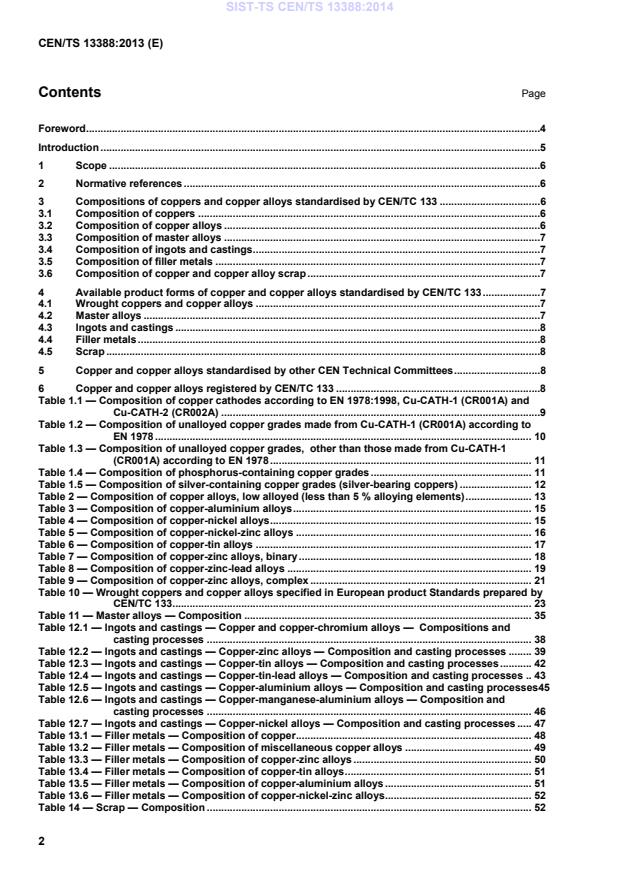 Ebenfalls enthalten sind Kupferlegierungen, die nicht durch CEN/TC 133 genormt sind, jedoch durch andere Technische CEN Komitees, die für Produkte aus Kupfer und Kupferlegierungen zuständig sind. Diese Legierungen sind durch CEN/TC 133 in Übereinstimmung mit den im CEN Bericht CR 12776 enthaltenen Verfahren registriert worden.