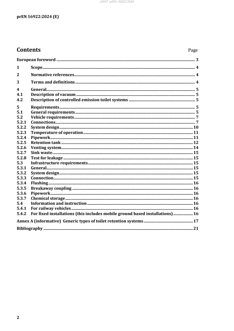 Keywords: FprEN 16922, railway, vehicle waste water discharge, controlled emission toilet, retention tank, vacuum connection, ground based services, servicing point.