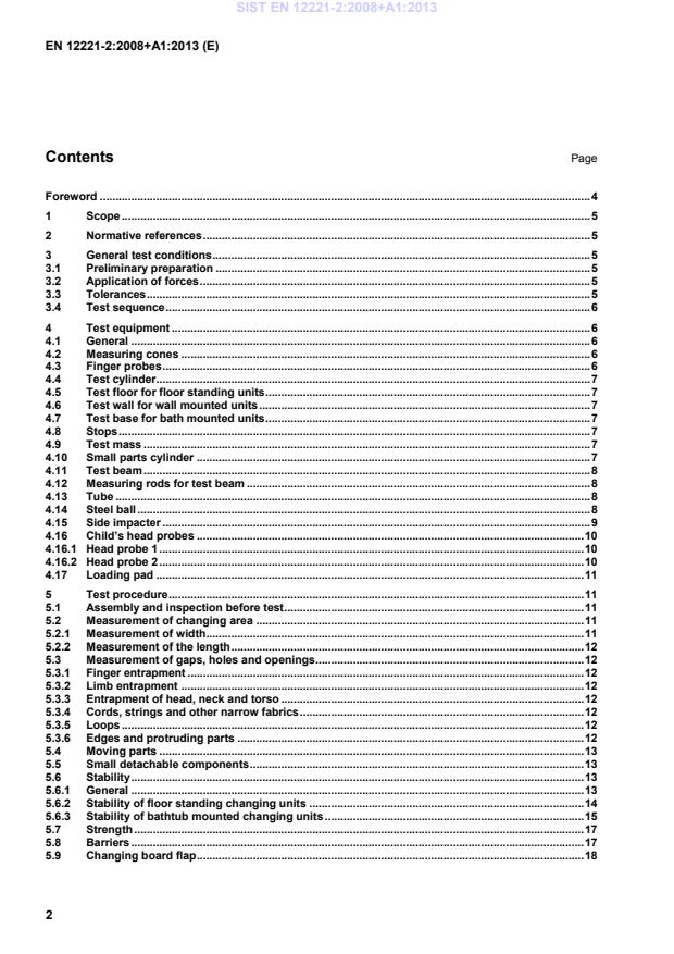 EN 12221-2:2008+A1:2013 is a standard published by the European Committee for Standardization (CEN). Its full title is "Child use and care articles - Changing units for domestic use - Part 2: Test methods". This standard covers: This part of EN 12221 specifies test methods that assess the safety of changing units. It should be noted that the effect of ageing and degradation of materials is not included.