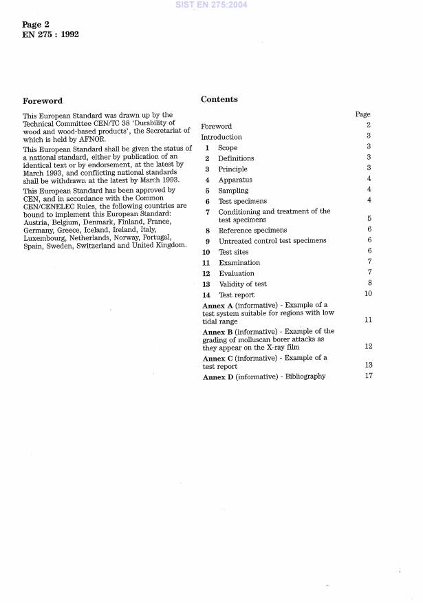 Keywords: EN 275:1992, wood preservatives, marine borers, marine test method, vacuum/pressure impregnation, timber protection, CEN standard, wood-protecting chemicals.