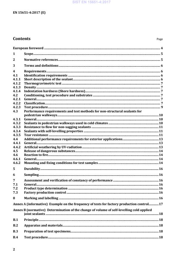 Determination of the change of volume of self-levelling cold applied joint sealants . 18 B.1 Principle . 18 B.2 Apparatus and materials . 18 B.3 Preparation of test specimens. 18 B.4 Test procedure . 18 SIST EN 15651-4:2017