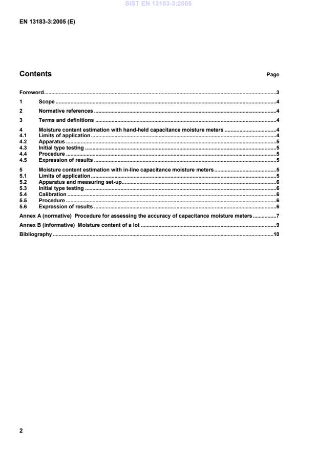 EN 13183-3:2005 is a CEN European standard that specifies a non-destructive capacitance method for estimating the moisture content of individual pieces of sawn timber (including planed or surfaced timber). The standard defines how capacitance moisture meters - both hand-held and in-line systems - shall be configured, tested and used to derive reliable moisture content estimates for timber pieces with moisture contents roughly between 7% and 30%.