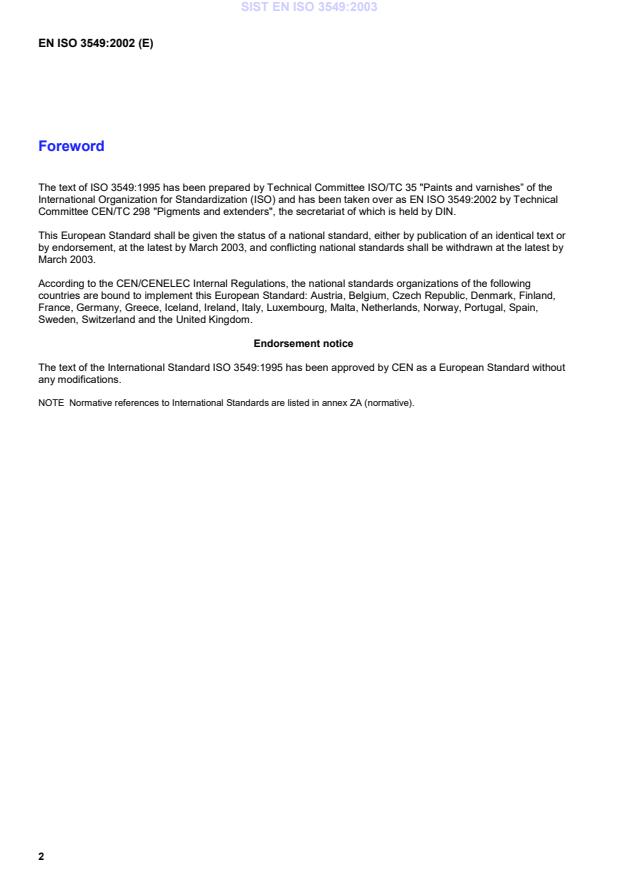EN ISO 3549:2002 is classified under the following ICS (International Classification for Standards) categories: 87.060.10 - Pigments and extenders. The ICS classification helps identify the subject area and facilitates finding related standards.