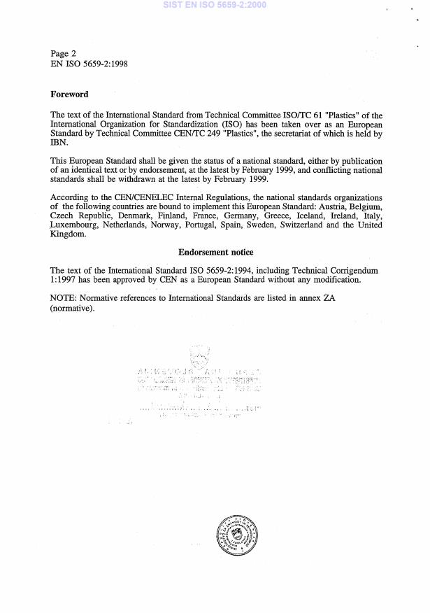 EN ISO 5659-2:1998 has the following relationships with other standards: It is inter standard links to EN ISO 5659-2:2006. Understanding these relationships helps ensure you are using the most current and applicable version of the standard.