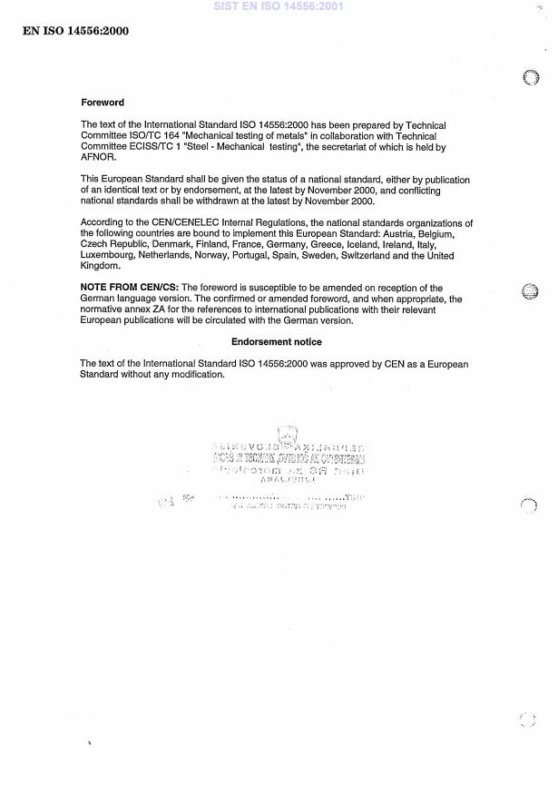 EN ISO 14556:2000 is classified under the following ICS (International Classification for Standards) categories: 77.040.10 - Mechanical testing of metals. The ICS classification helps identify the subject area and facilitates finding related standards.