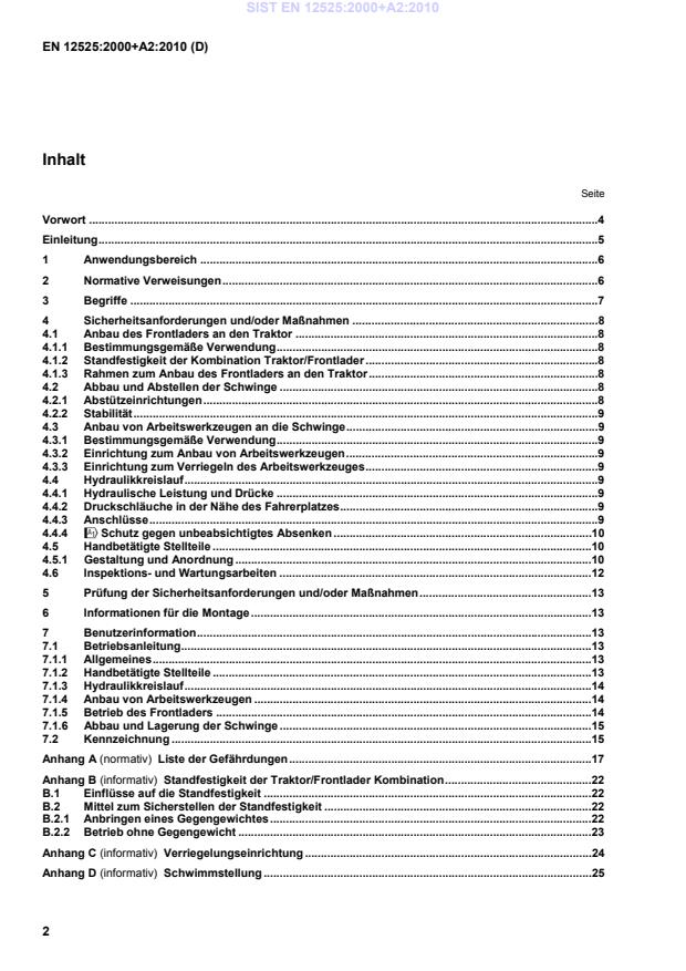 Landmaschinen - Frontlader - Sicherheit This European Standard was approved by CEN on 22 November 1999 and includes Amendment 1 approved by CEN on 16 March 2006 and Amendment 2 approved by CEN on 24 January 2010.