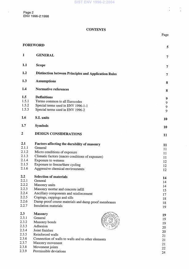 The scope of Eurocode 6 for Masonry Structures as given in 1.1.1 of ENV 1996-1-1 applies also to this Part 2. This Part 2 provides the necessary Principles and Application Rules for masonry to be designed and constructed satisfactorily in order to comply with the design assumptions of the other Parts of Eurocode 6. Except for the items as given in 1.1(3)P, it deals with ordinary aspects of masonry design and construction including: - the selection of materials; - methods of combining masonry materials and of incorporating other materials required to give functional performance;...