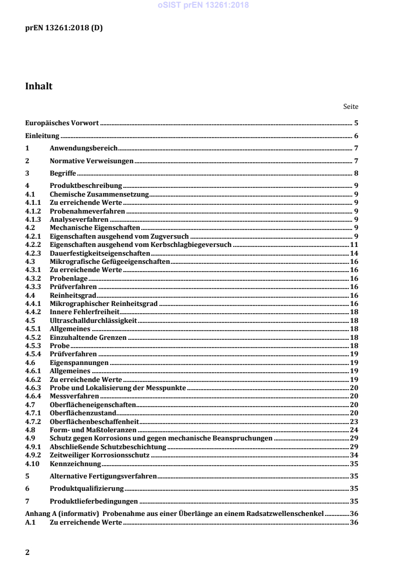 Es legt die Eigenschaften von durch Schmiedeverfahren oder Walzen hergestellten Radsatzwellen aus vakuumentgastem Stahl der Sorte EA1N , EA1T1 und EA4T1 fest. Für längsgebohrte Radsatzwellen gilt diese Norm nur, wenn diese durch mechanische Bearbeitung der Bohrung in einer geschmiedeten oder gewalzten ganzen Radsatzwelle hergestellt werden.