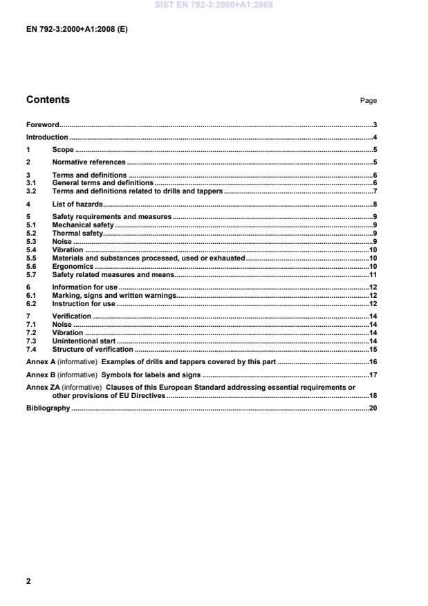 EN 792-3:2000+A1:2008 is a standard published by the European Committee for Standardization (CEN). Its full title is "Hand-held non-electric power tools - Safety requirements - Part 3: Drills and tappers". This standard covers: The standard EN 792 applies to hand-held non-electric power tools driven by rotary or linear motors, powered by compressed air, hydraulic fluid and intended to be used by one operator and supported by: - the operator's hand or hands, - a suspension, e.g. a balancer. This part, EN 792-3, applies to hand-held non electric power tools used for rotary drilling of holes in all kinds of material, e.g. wood, metal, concrete, plastics etc. and tappers for tapping and cleaning threads in metal and plastics. This part lists the significant hazards caused by such power tools and specifies safety requirements valid for different aspects of safety during their foreseeable lifetime. Power tools covered by this part of the standard: - drills, - heavy duty drills with two handles, - tappers. Special requirements and modifications on a hand-held power tool for the purpose of mounting it in a fixture are not covered by this part. NOTE At the date of publication no drills and tappers driven by internal combustion engines are known.
