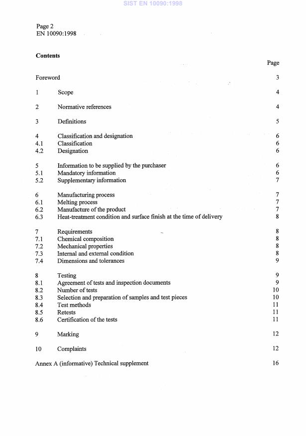 (Note: EN 10090:1998 lists grades and technical details in its tables and clauses-refer to the published standard for exact compositions, mechanical properties, testing and verification methods.)