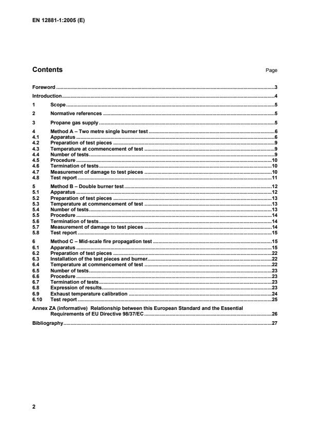 Dieser Teil der EN 12881 legt drei Verfahren zur Bestimmung der Ausbreitung einer Flamme entlang eines Fördergurtes fest, der einer örtlichen Wärmequelle, wie Feuer, ausgesetzt war. Es wird sowohl die Beschädigung des Fördergurtes gemessen als auch seine Neigung, die Verbrennung zu unterstützen, wobei das Fortschreiten der Flamme entlang des Probekörpers beobachtet wird.