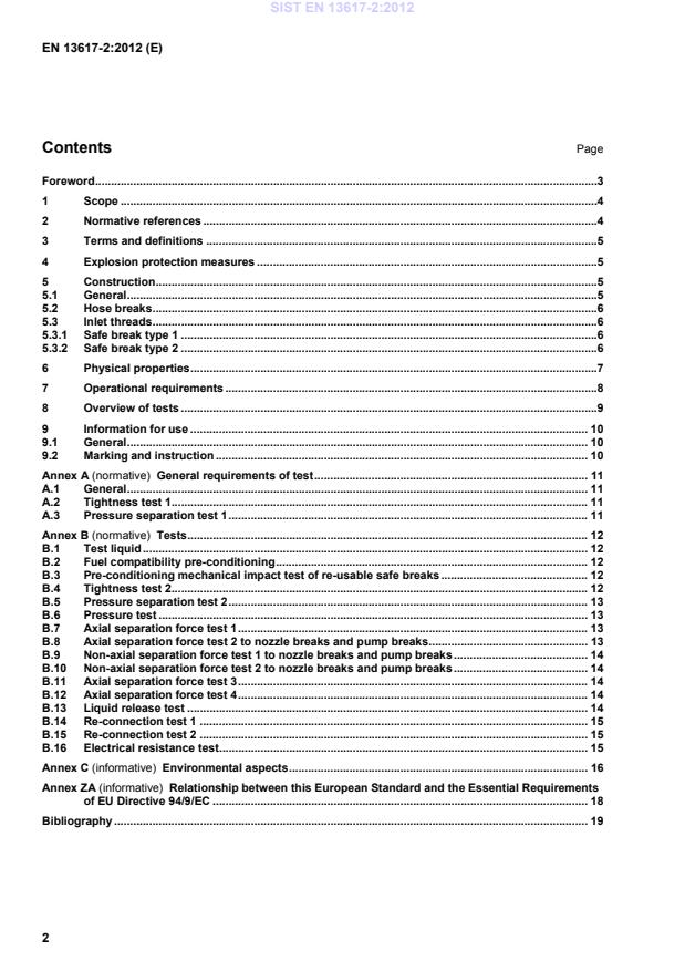 Relationship between this European Standard and the Essential Requirements of EU Directive 94/9/EC . 18Bibliography . 19 SIST EN 13617-2:2012