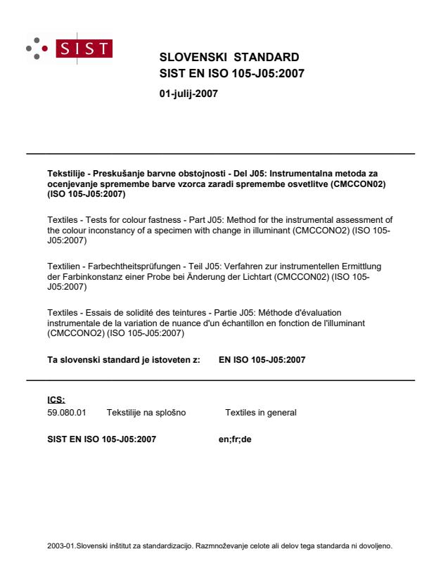 Ta slovenski standard je istoveten z: EN ISO 105-J05:2007