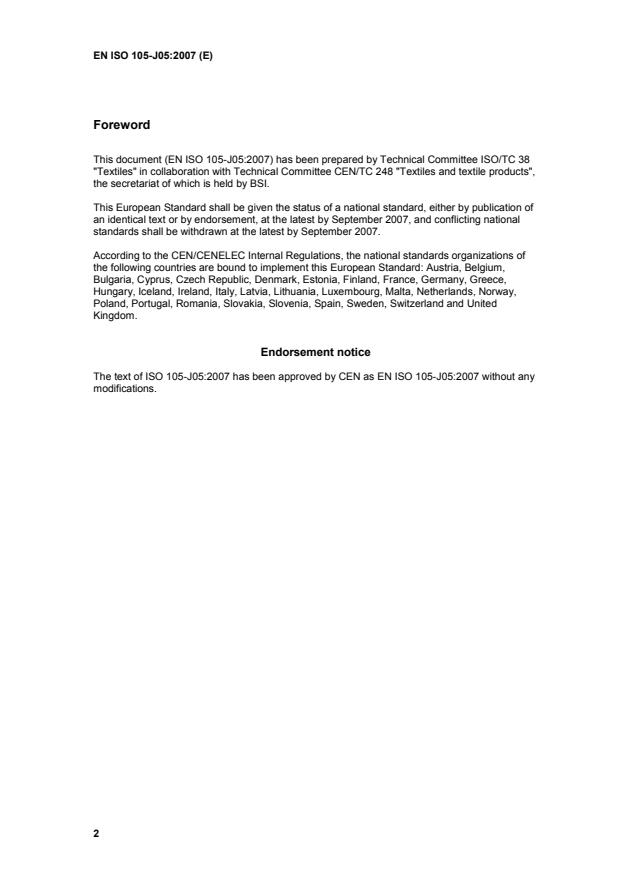 The text of ISO 105-J05:2007 has been approved by CEN as EN ISO 105-J05:2007 without any