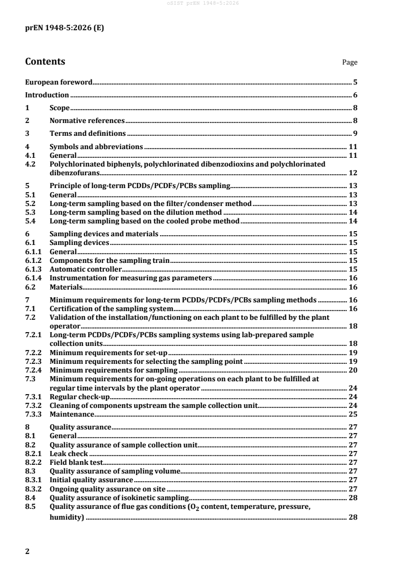 Keywords: prEN 1948-5, stationary source emissions, long-term sampling, PCDDs, PCDFs, dioxin-like PCBs, environmental monitoring, EU emission standards, CEN, industrial emissions compliance.