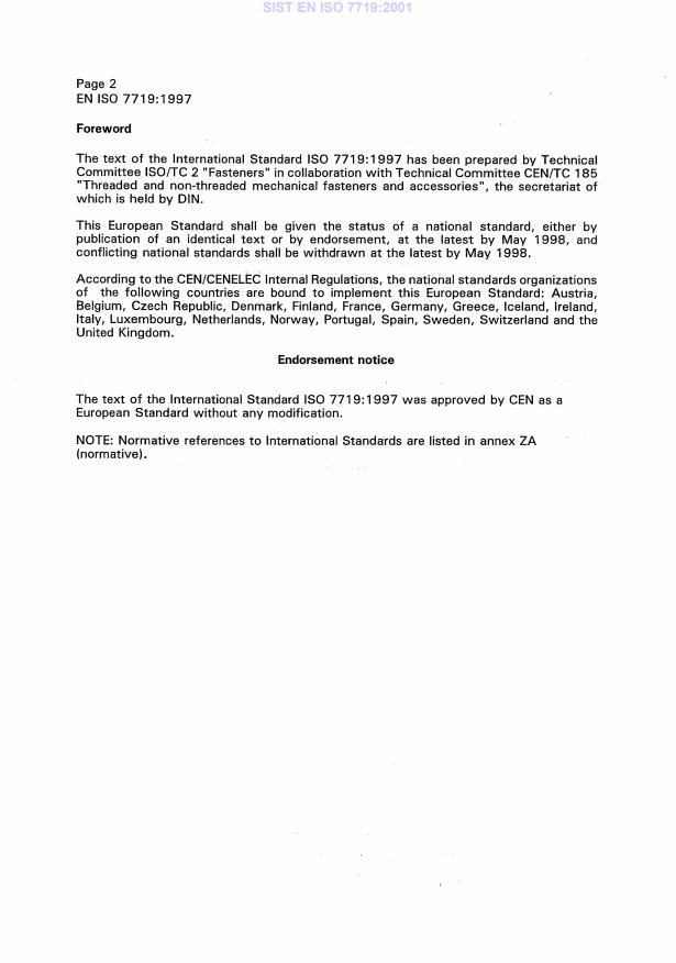 ISO 1997All rights reserved. Unless otherwise specified, no part of this publication may be reproducedor utilized in any form or by any means, electronic or mechanical, including photocopying andmicrofilm, without permission in writing from the publisher.International Organization for StandardizationCase postale 56 · CH-1211 Genève 20 · SwitzerlandInternetcentral@iso.chX.400c=ch; a=400net; p=iso; o=isocs; s=centralPrinted in SwitzerlandiiForewordISO (the International Organization for Standardization) is a worldwidefederation of national standards bodies (ISO member bodies). The work ofpreparing International Standards is normally carried out through ISOtechnical committees. Each member body interested in a subject for whicha technical committee has been established has the right to be representedon that committee. International organizations, governmental and non-governmental, in liaison with ISO, also take part in the work. ISOcollaborates closely with the International Electrotechnical Commission(IEC) on all matters of electrotechnical standardization.Draft International Standards adopted by the technical committees arecirculated to the member bodies for voting. Publication as an InternationalStandard requires approval by at least 75 % of the member bodies castinga vote.International Standard ISO 7719 was prepared by Technical CommitteeISO/TC 2, Fasteners, Subcommittee SC 1, Mechanical properties offasteners.This second edition cancels and replaces the first edition (ISO 7719:1983),which has been technically revised.Annex A of this International Standard is for information only.SIST EN ISO 7719:2001