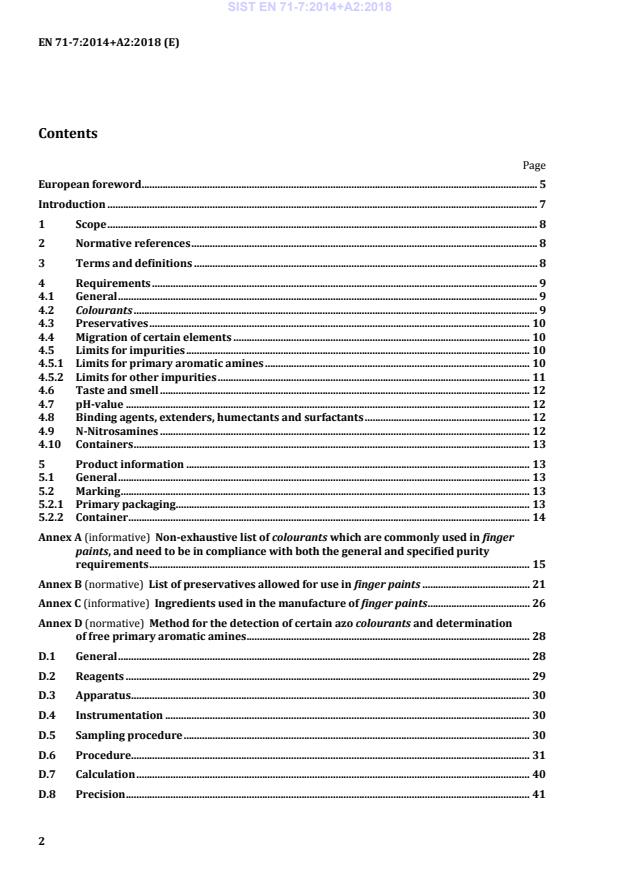 EN 71-7:2014+A2:2018 is a standard published by the European Committee for Standardization (CEN). Its full title is "Safety of toys - Part 7: Finger paints - Requirements and test methods". This standard covers: This part of EN 71 specifies requirements for the substances and materials used in finger paints and applies to finger paints only. Additional requirements are specified for markings, labelling and containers.
