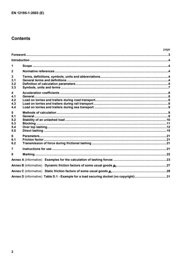 This Part of prEN 12195 specifies acceleration coefficients for surface transport. It also gives methods of calculation of lashing forces acting on goods on load carriers, lorries, trailers and swap bodies, either on road, on vessels or by rail and/or combinations thereof for different types of load and different types of lashing. It excludes the hump shunting during railway transport (web lashings see EN 12195-2, lashing chains see EN 12195-3, wire lashing ropes see prEN 12195-4).
