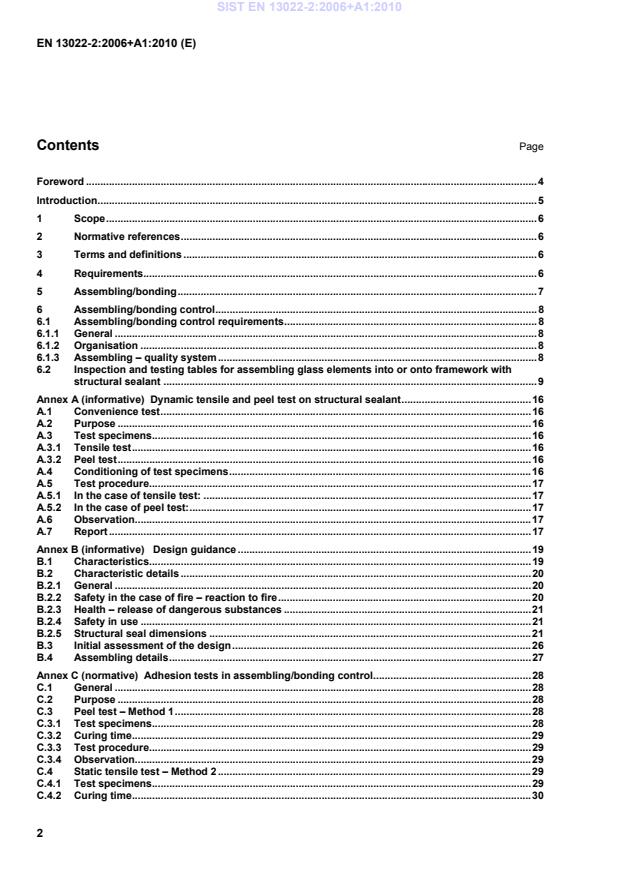 Adhesion tests in assembling/bonding control . 28C.1General . 28C.2Purpose . 28C.3Peel test – Method 1 . 28C.3.1Test specimens. 28C.3.2Curing time . 29C.3.3Test procedure. 29C.3.4Observation . 29C.4Static tensile test – Method 2 . 29C.4.1Test specimens. 29C.4.2Curing time . 30SIST EN 13022-2:2006+A1:2010