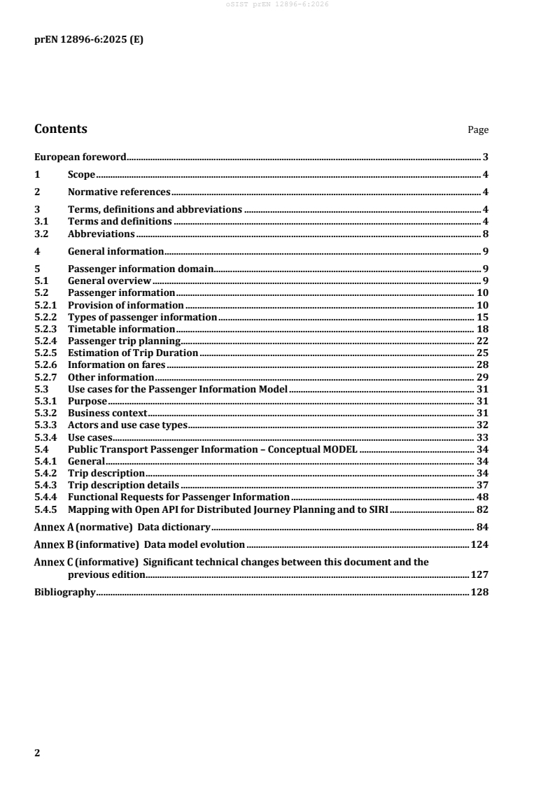 - Annex C, providing details of the significant technical changes between this document and EN 12896 6:2019 (informative).