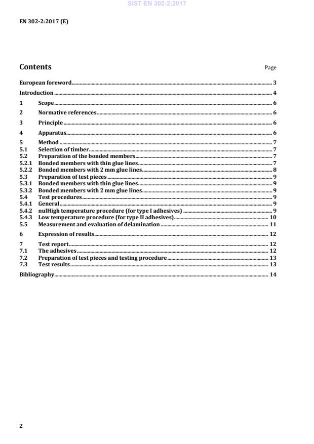 EN 302-2:2017 is a standard published by the European Committee for Standardization (CEN). Its full title is "Adhesives for load-bearing timber structures - Test methods - Part 2: Determination of resistance to delamination". This standard covers: This European Standard specifies a method for determining the resistance to delamination in glue lines. It is suitable for the following applications: a) for assessing the compliance of adhesives with EN 301, EN 15425 and EN 16254; b) for assessing the suitability and quality of adhesives for load-bearing timber structures; c) for comparing the effects on the bond strength resulting from the choice of bonding conditions, from different climatic conditioning and from the treatment of the test pieces before and after bonding. This test is not applicable for modified and stabilized wood with strongly reduced swelling and shrinkage properties, such as acetylated wood, heat-treated wood and polymer impregnated wood. This test is intended primarily to obtain performance data for the classification of adhesives for load-bearing timber structures according to their suitability for use in defined climatic environments. This method is not intended to provide data for structural design, and does not necessarily represent the performance of the bonded member in service.