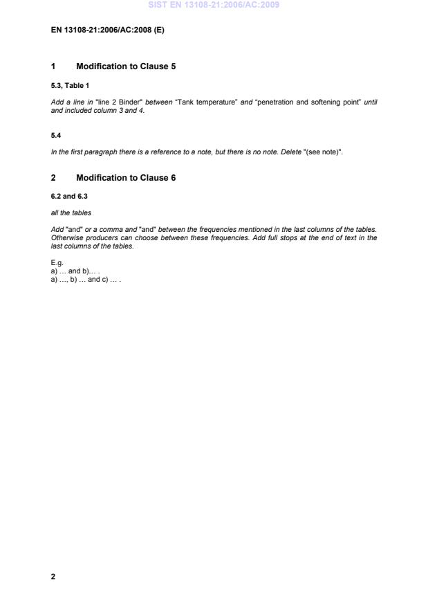 © 2008 Lastnice avtorskih pravic so vse države članice CEN Ref. oznaka EN 13108-21:2006/AC:2008 E