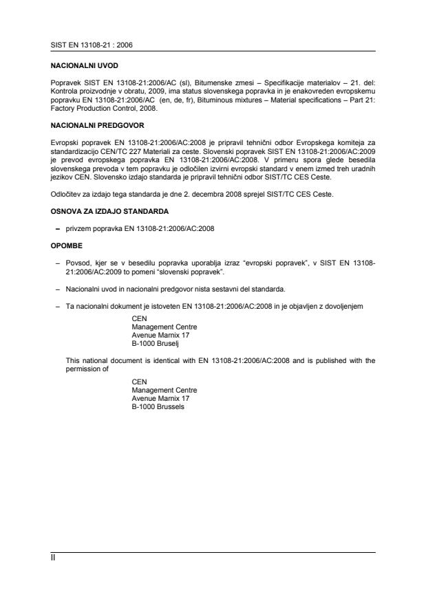 standardizacijo CEN/TC 227 Materiali za ceste. Slovenski popravek SIST EN 13108-21:2006/AC:2009