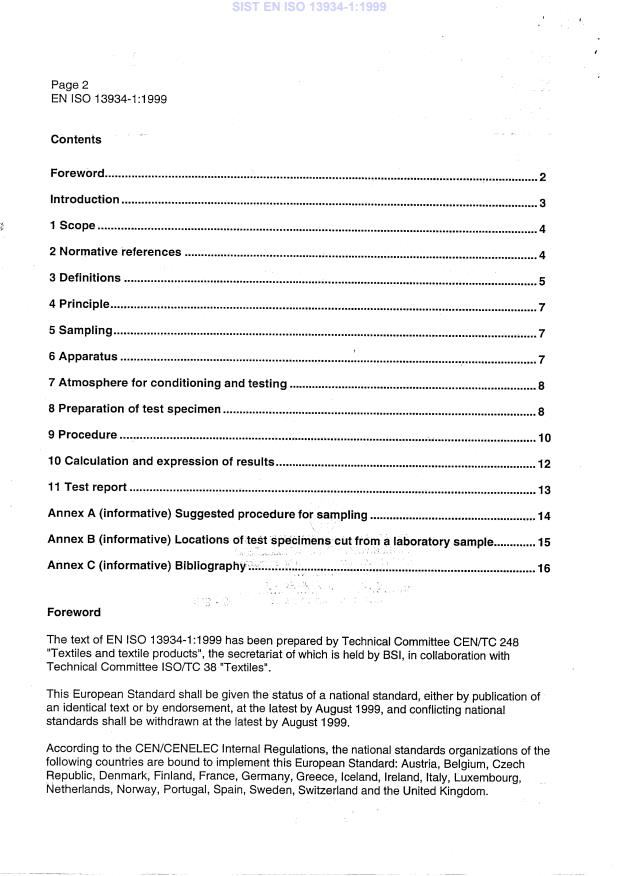 Dieser Teil von EN ISO 13934 legt ein Verfahren fest zur Bestimmung der Höchstzugkraft und Höchstzugkraft-Dehnung an textilien Flächengebilden mit dem Streifen-Zugversuch. Anmerkung: In Teil 2 von EN ISO 13934 wird das als Grab-Zugversuch bekannte Verfahren beschrieben. Informative Verweisungen siehe Anhang C.
