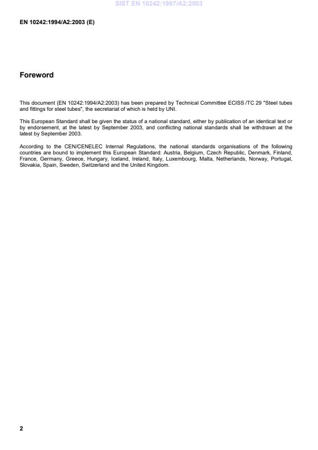 This amendment A2 modifies the European Standard EN 10242:1994; it was approved by CEN on 28 November 2002.