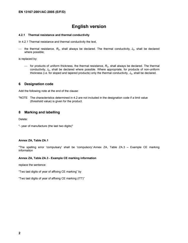 2 English version 4.2.1 Thermal resistance and thermal conductivity In 4.2.1 Thermal resistance and thermal conductivity the text, the thermal resistance, RD, shall always be declared. The